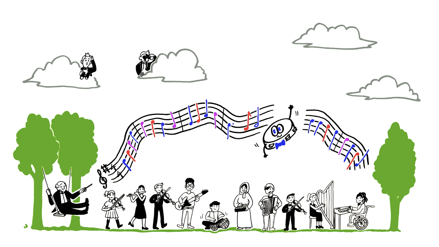 Video 3 transcription. I, the music education system, frequently find myself in the background. I am neglected, in comparison to other ‘more important’ disciplines. I’m expected to serve academic development in order to get more resources. But, as much as people claim that studying music helps improve math skills, I haven’t heard, ‘practice math to become better at music’! It is time to rethink and change! I can be so much more. I can bravely tackle broader societal and ecological challenges. I can play a vital role in transforming social, cultural, and political landscapes. I’m not just a side character. I am connected with society. I am not a gatekeeper, but an imaginative, responsible agent who loves people, as well as music. I must unlock my powers! Video 3: Music education: Not just a side character.